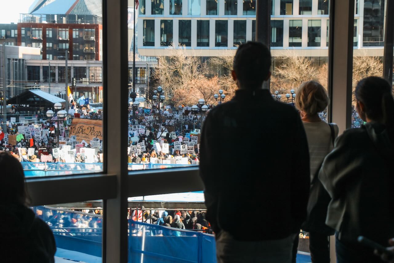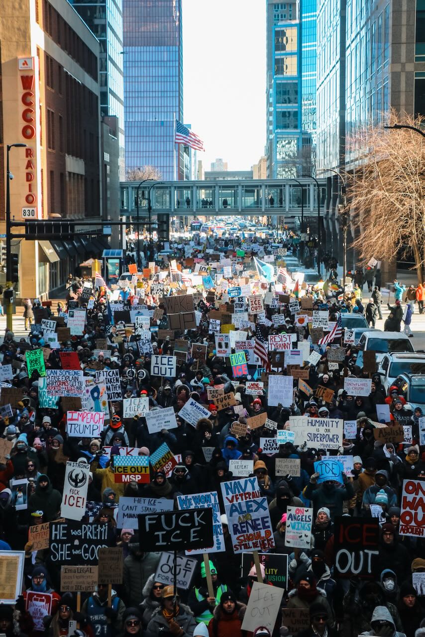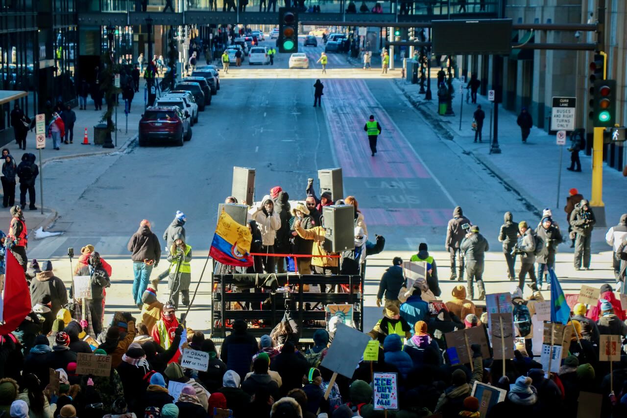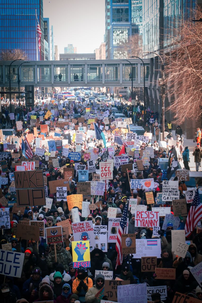 Photos from the second anti-ICE march through downtown Minneapolis, documenting community solidarity and peaceful protest against immigration enforcement policies.