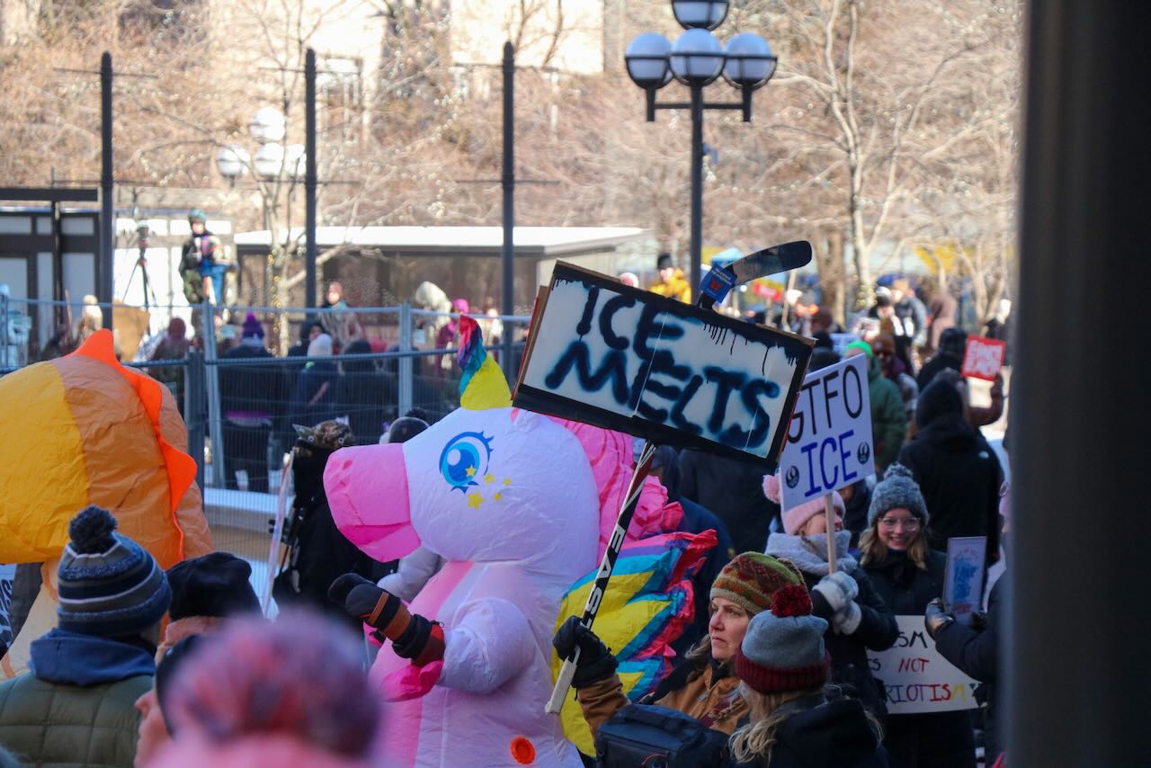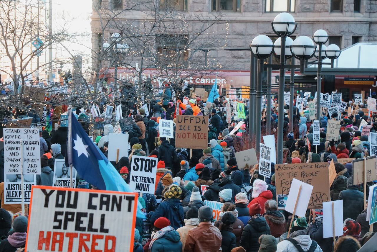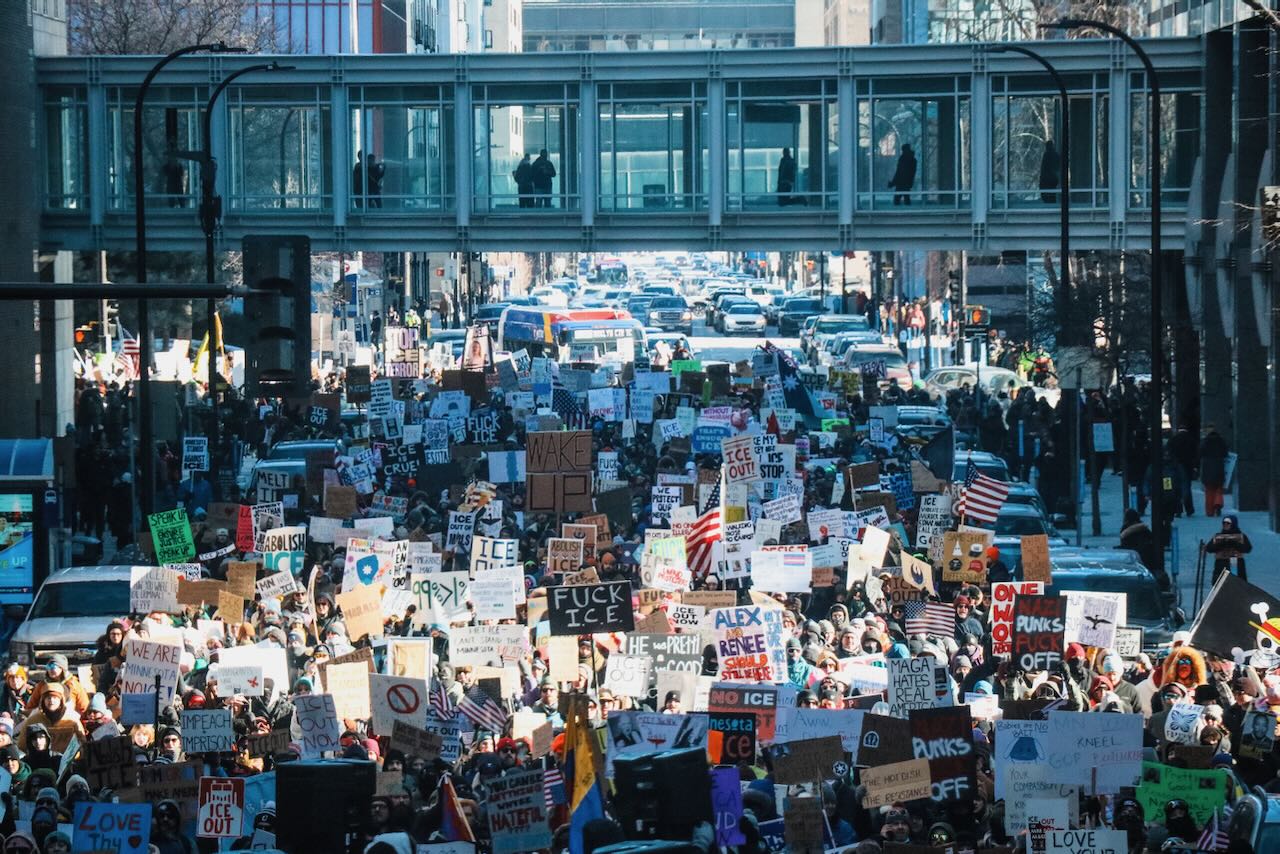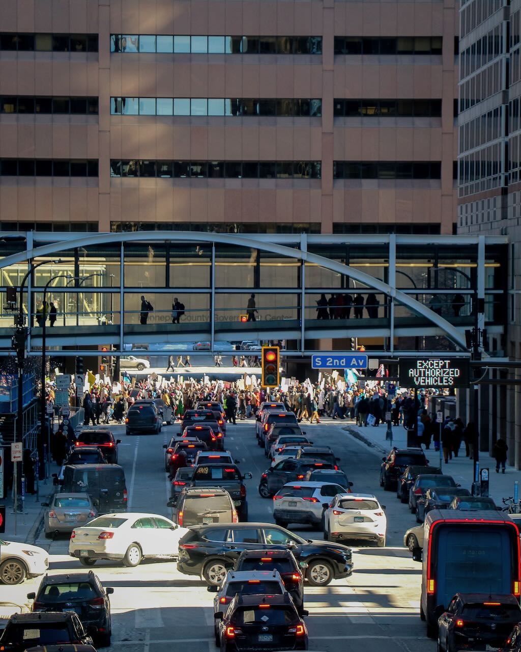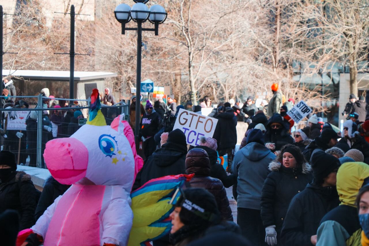 Photos from the second anti-ICE march through downtown Minneapolis, documenting community solidarity and peaceful protest against immigration enforcement policies.