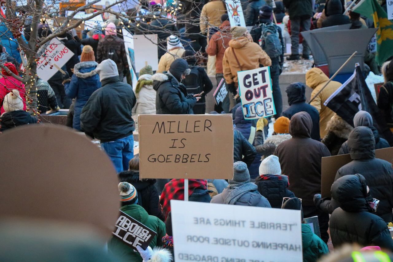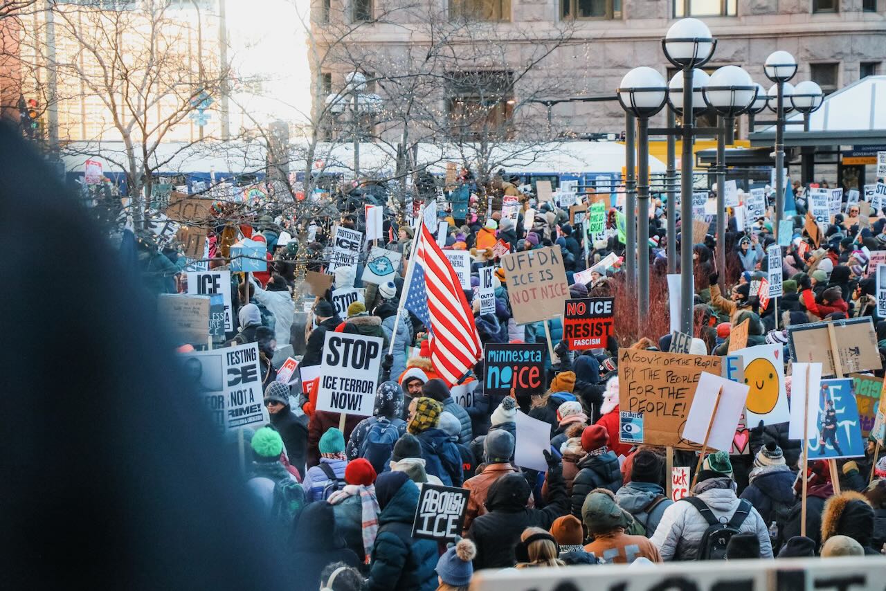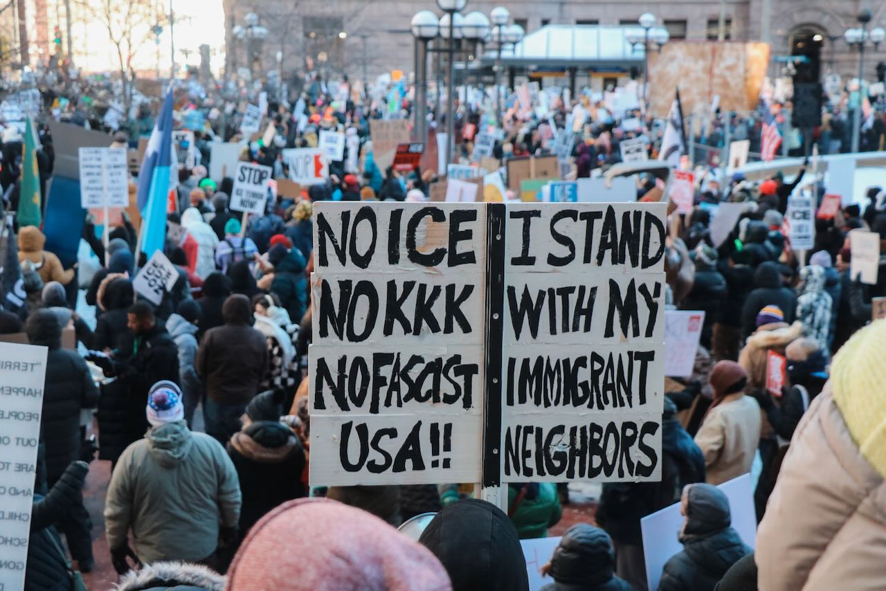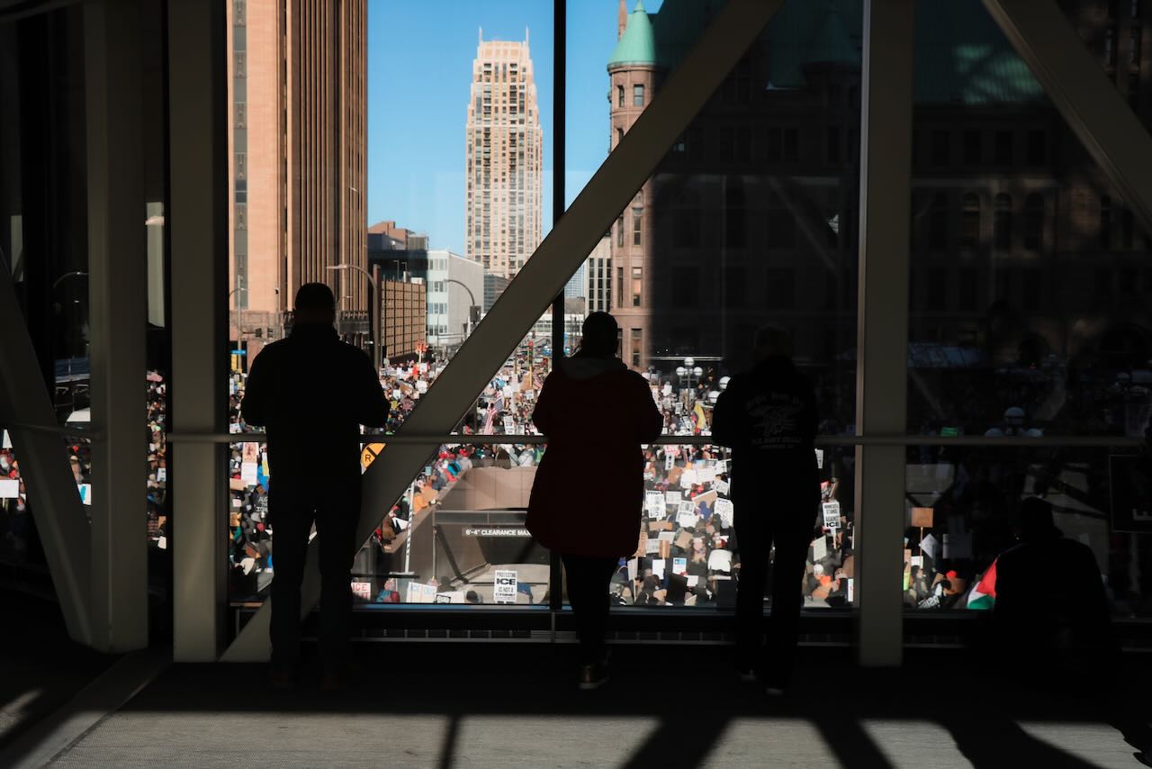 Photos from the second anti-ICE march through downtown Minneapolis, documenting community solidarity and peaceful protest against immigration enforcement policies.